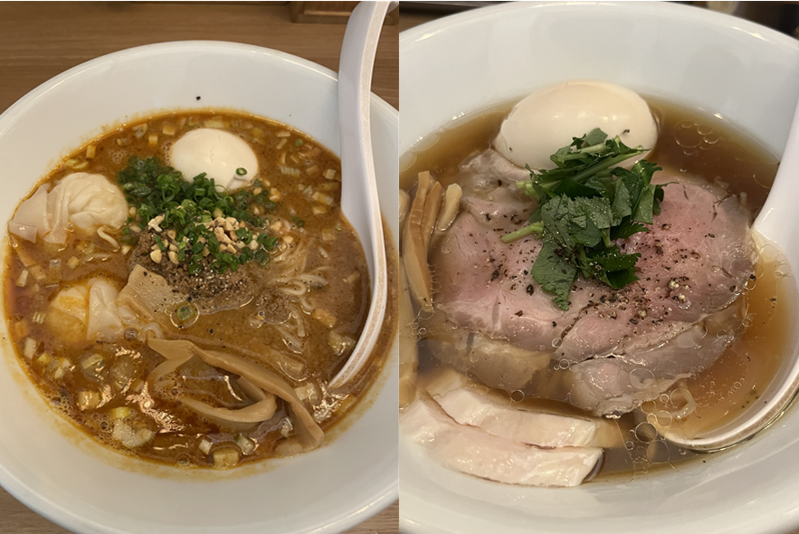 <좌측> 완탕을 추가한 탄탄멘 / 기본 소유라멘 <우측>