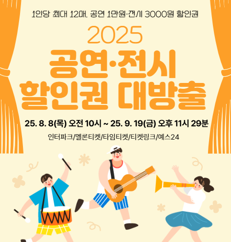 2025 공연전시 할인권 대방출 문화체육관광부가 100억 원 규모의 예산을 투입해